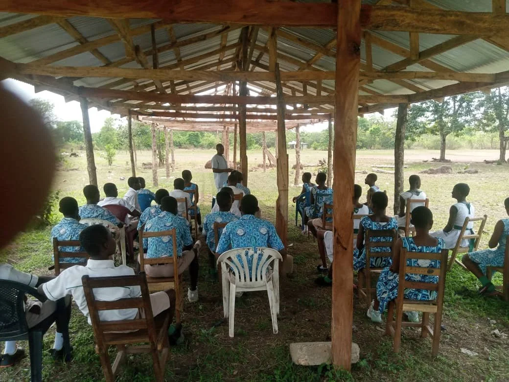In het Ghanese dorp Yabraso krijgen tientallen kinderen les onder een afdak of zelfs buiten onder een boom. Het enige klaslokaal is overvol. Maar de gemeenschap geeft niet op: ouders en leerkrachten zijn zelf begonnen met de bouw van een extra lokaal — met hout uit de buurt en hun eigen handen.